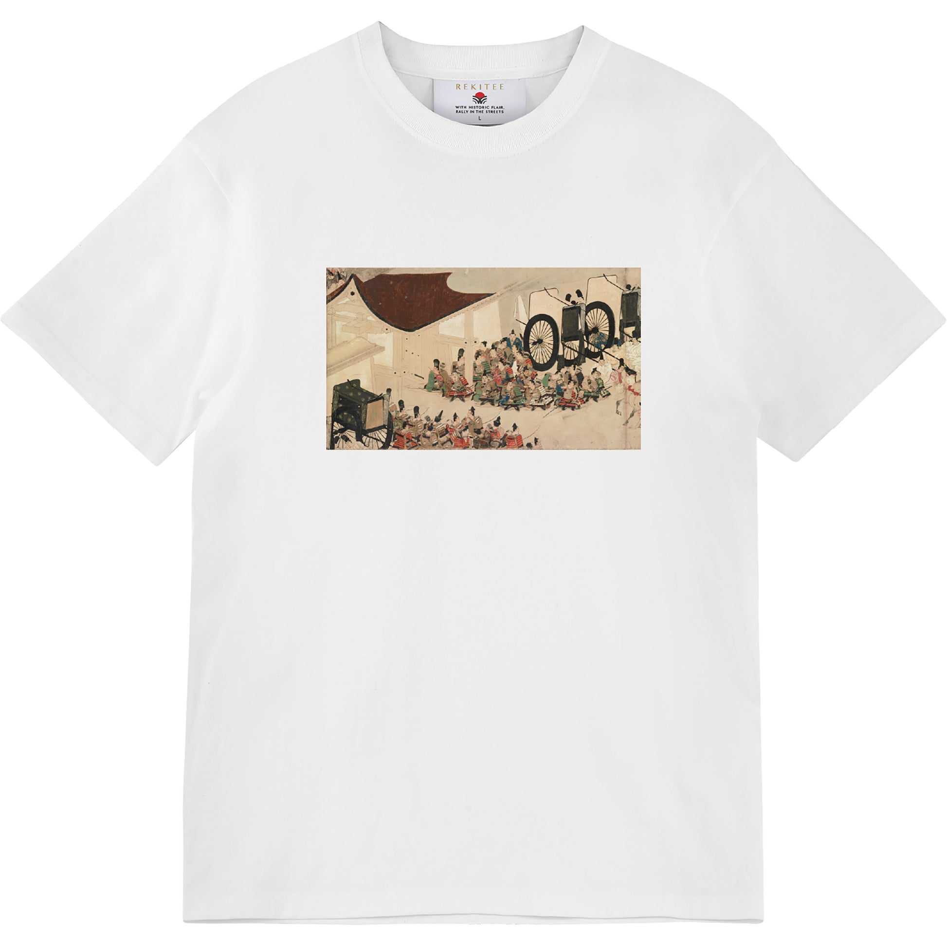 This long narrative scroll, created in the Kamakura period, depicts the Heiji Rebellion of 1159, a major conflict at the end of the Heian period. This scene focuses on Emperor Nijō, who, after being held captive by Minamoto no Yoshitomo and others, escapes the palace disguised as a court lady and is received at Taira no Kiyomori’s residence in Rokuhara. While the lines are not overly decorative, the vivid colors are a distinctive feature.