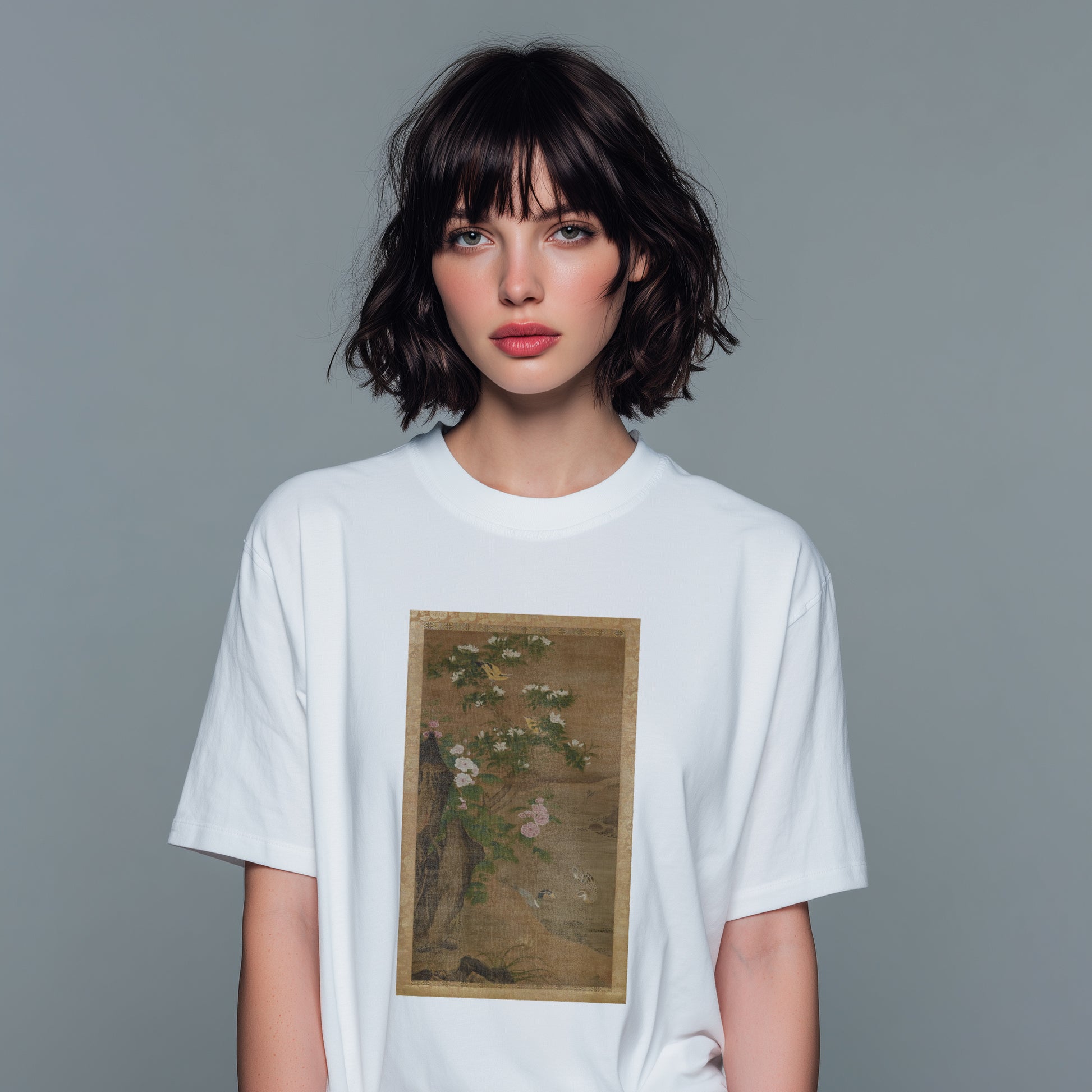 This work represents "Autumn" from a four-panel series themed on the four seasons. Chrysanthemums, fragrant olives, and cotton roses are depicted alongside mynas, ruddy shelducks, and paradise flycatchers, all arranged in an elegant and refined composition. Considered Lü Ji’s greatest masterpiece, it also influenced Japanese art from the Muromachi period onward.