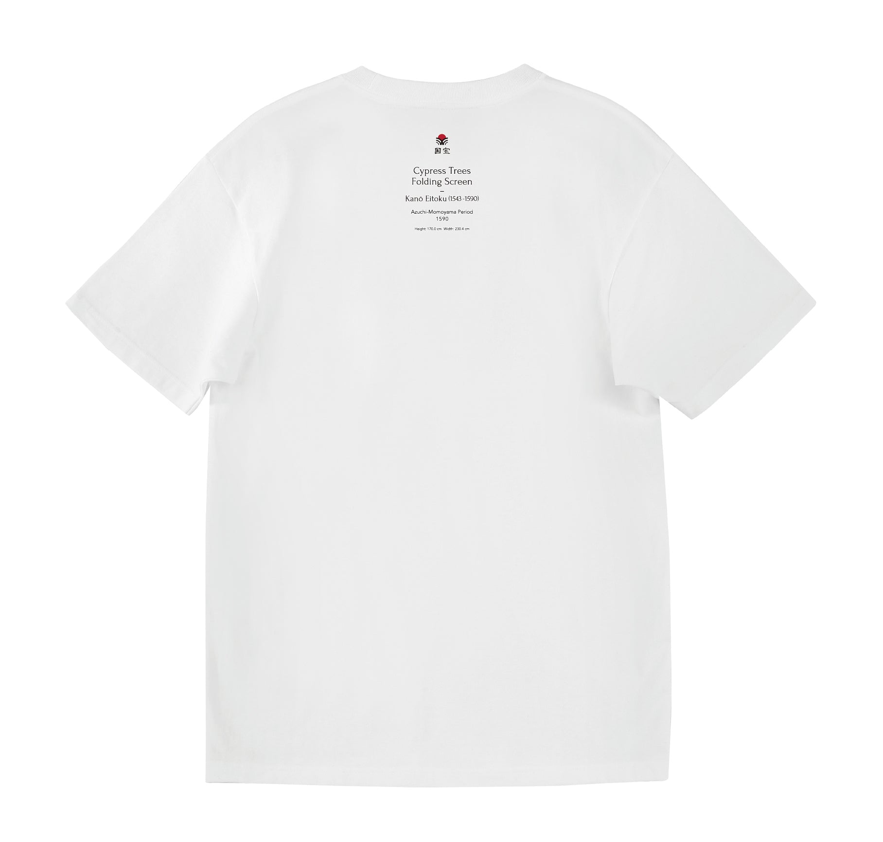 This folding screen boldly depicts a towering cypress tree with overwhelming presence. Its composition extends beyond the frame, with gold clouds at the top emphasizing the tree’s great height. Despite the limited palette—brown, ultramarine, gold, and verdigris—the dynamic energy of the ancient tree is vividly captured, reflecting the aesthetic sensibilities of Sengoku-period warlords.